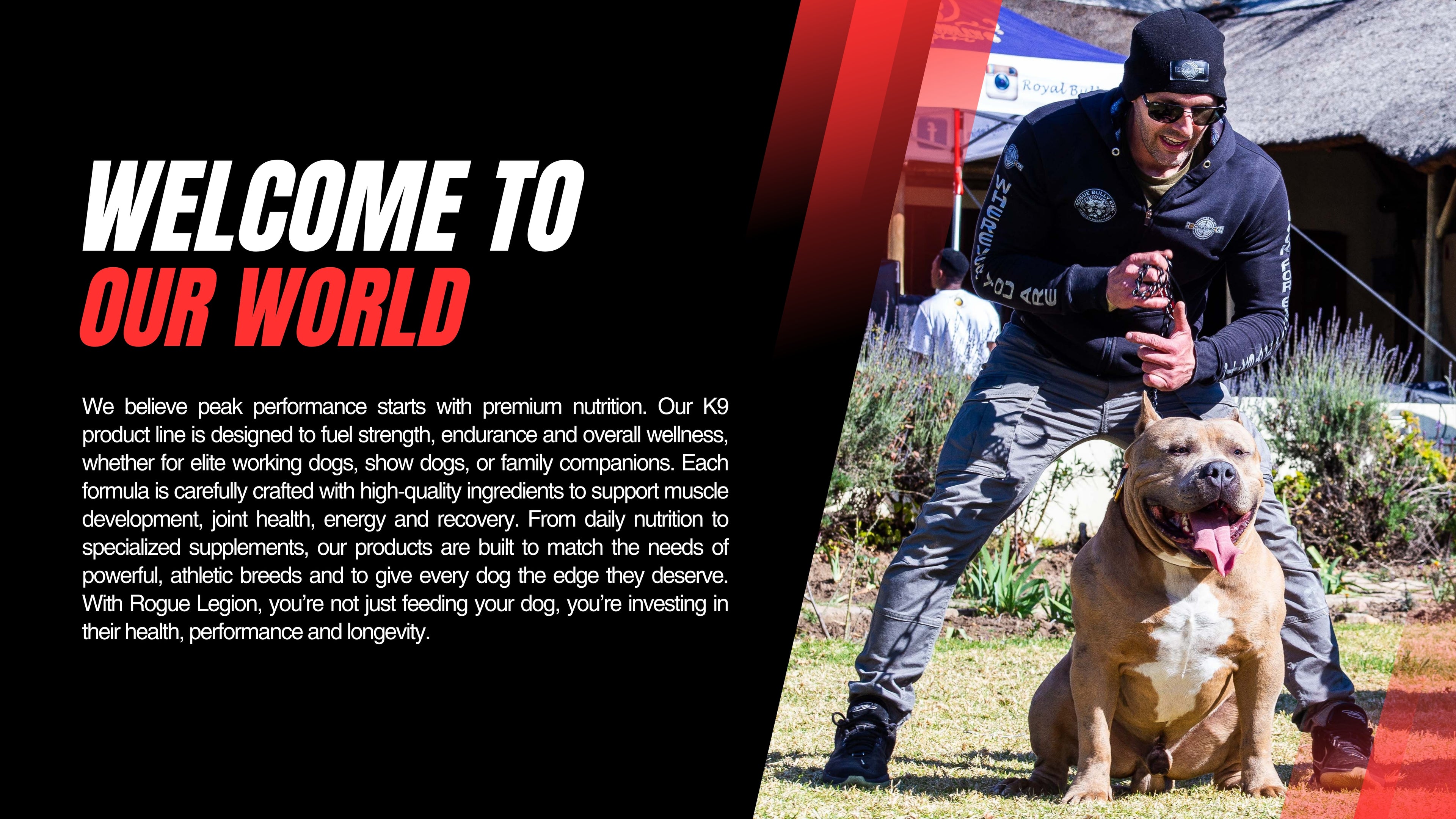 Unleash your dog’s full potential with Rogue Legion’s premium K9 supplements — crafted for muscle growth, joint strength, and all-around vitality. Trusted by top breeders and powered by science. Because champions deserve elite nutrition.